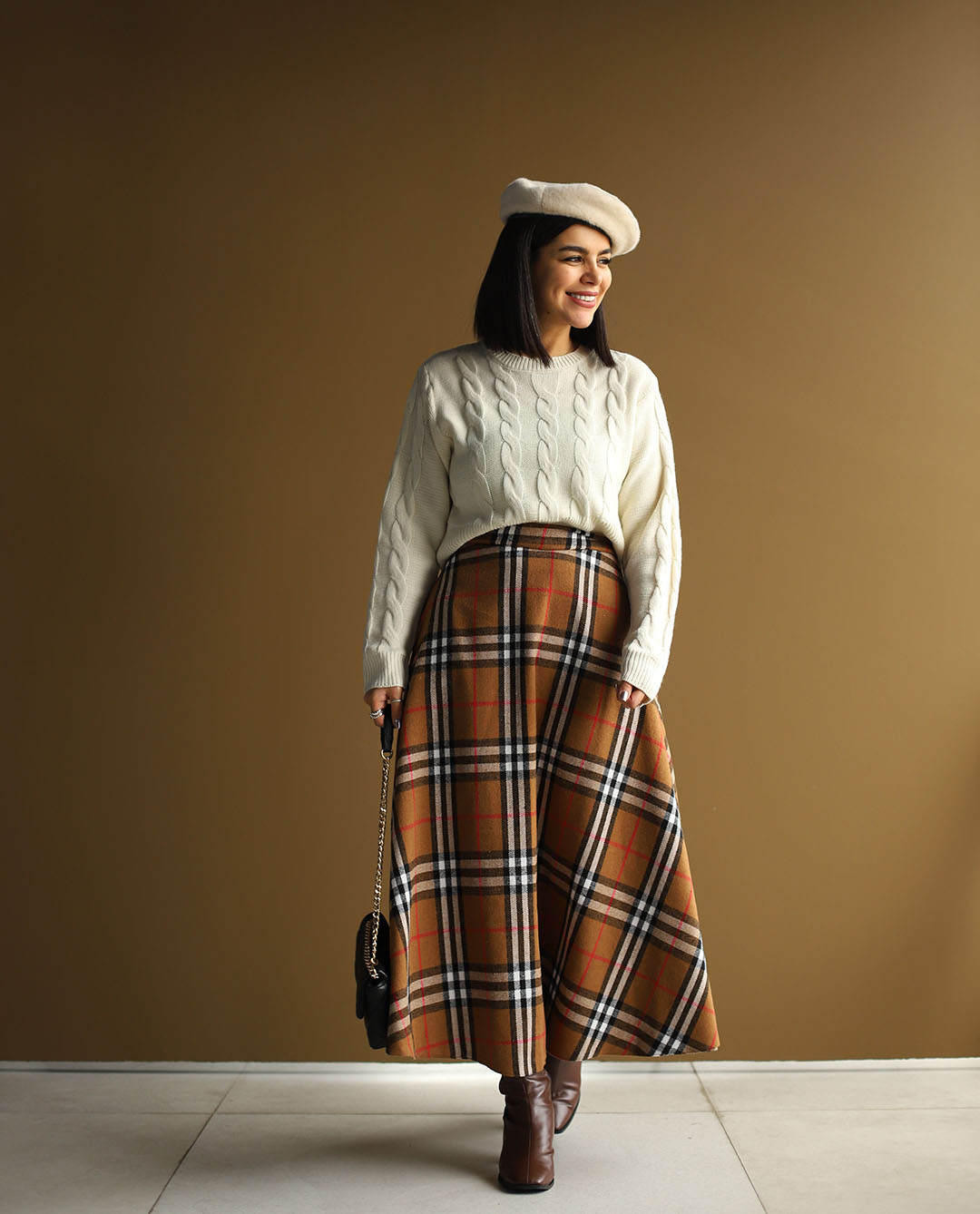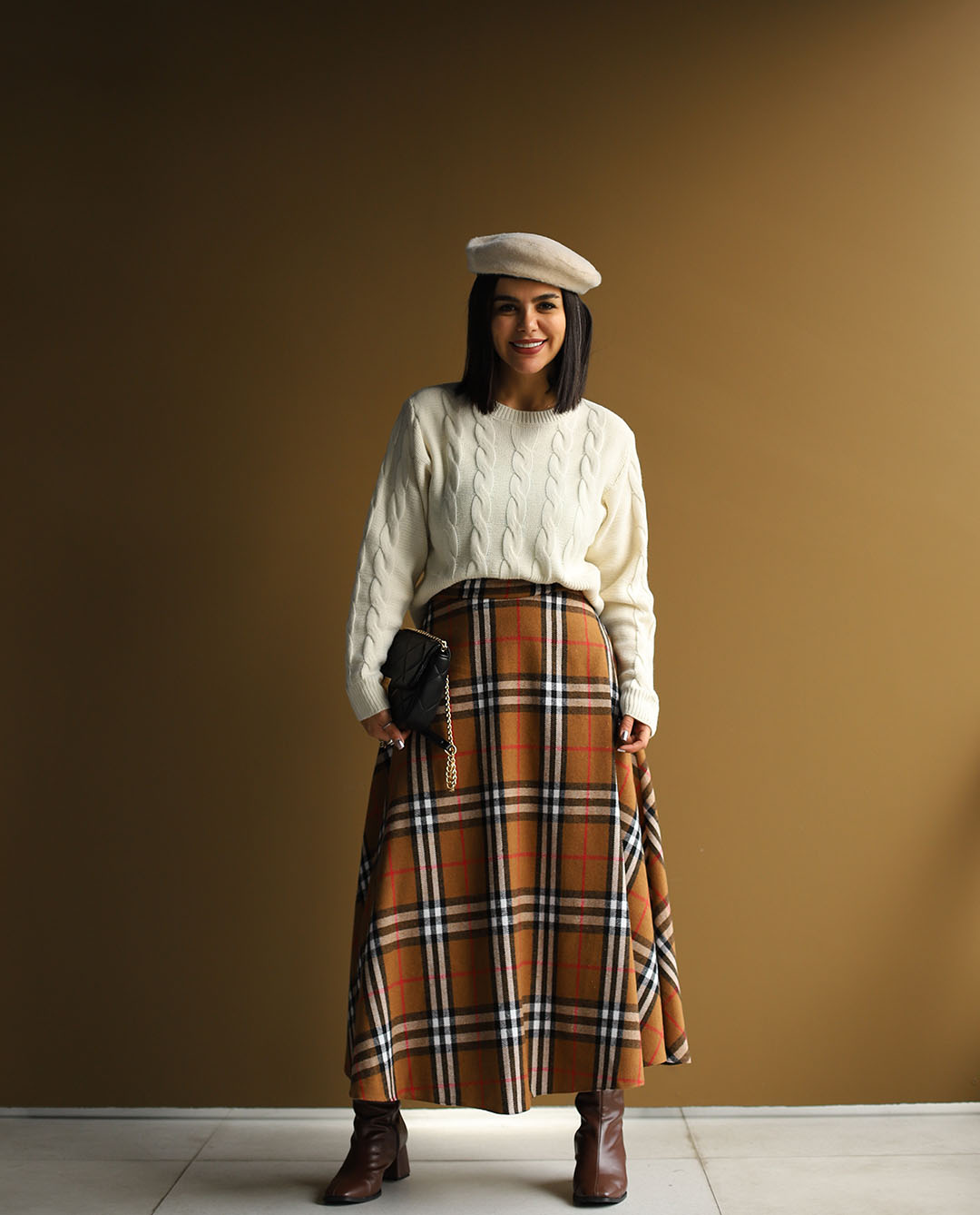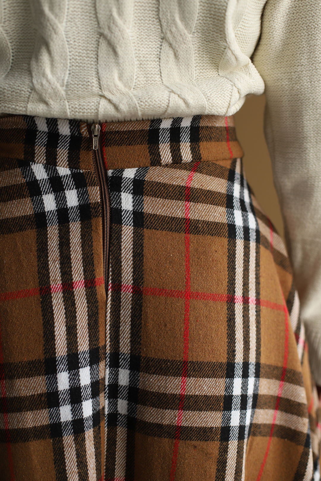 دامن چهارخونه قهوه ایی 06_C.71619 Vintage