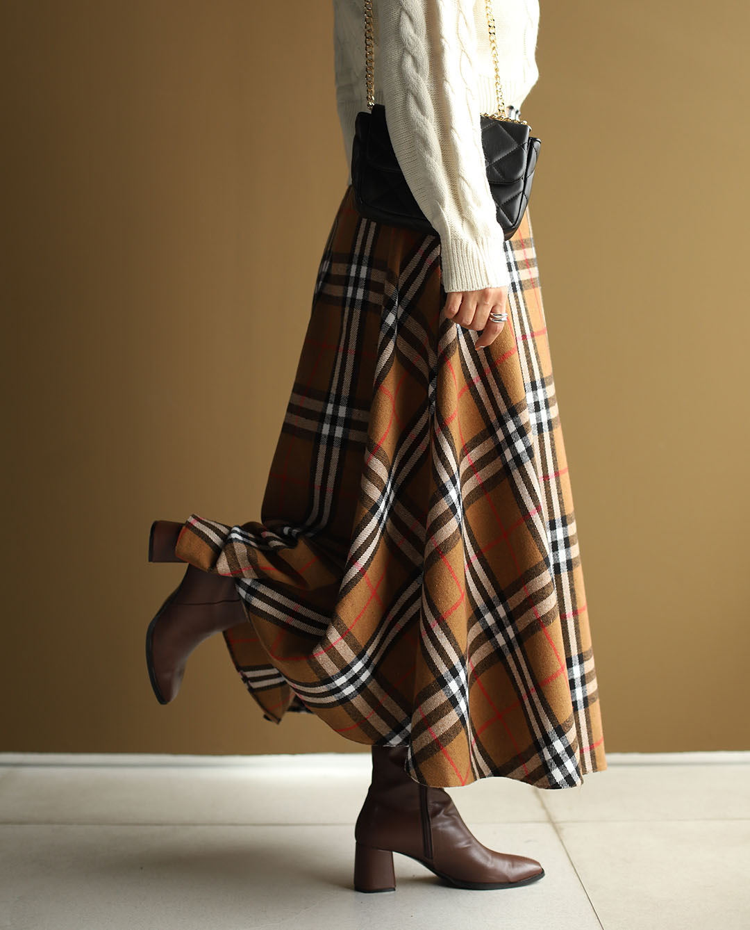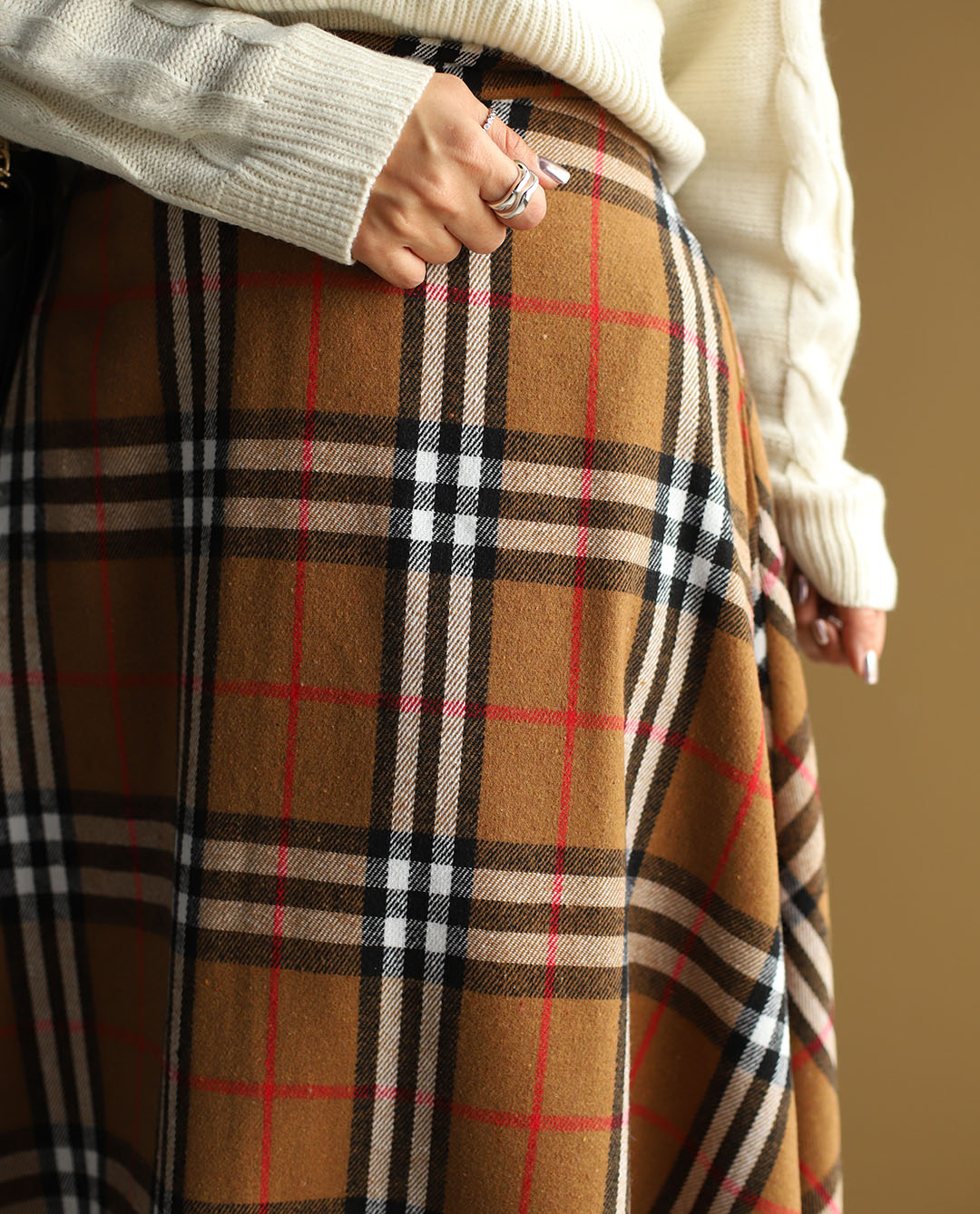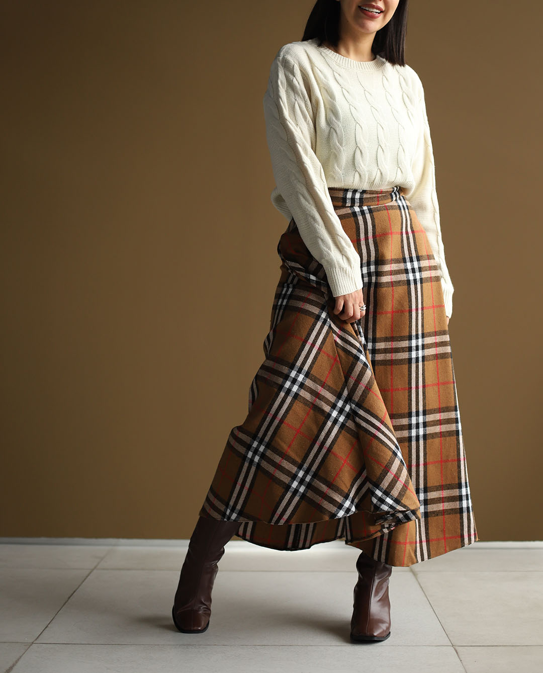 دامن چهارخونه قهوه ایی 06_C.71619 Vintage