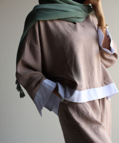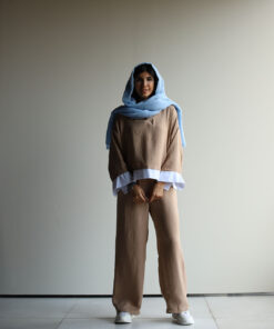شومیز:دورسینهحدودا128_130 – دوربازو42_44 – قدآستینازیقه59_62 – دورمچ36 – عرضپایین(دورتادورلباس)124_126 – قد55_57