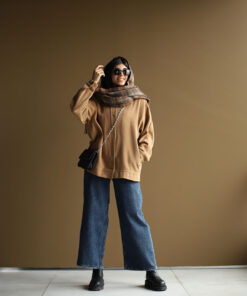مشکی/قهوهای:دورسینهحدودا132_134 – دوربازو46_48 – قدآستینازیقه71_73 – دورمچ22 – عرضپایین(دورتادورلباس)120_122 – قد68_70